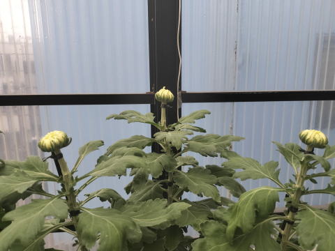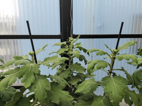 前日にお打ち合わせしましたが、菊の審査日は12月28日とのことで、10月まで電照して開花を調整しているとのこと。