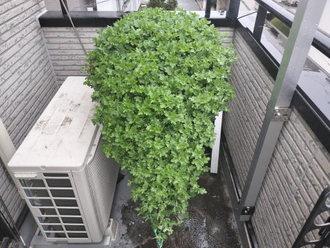 私の栽培場所は3階のベランダであり、対面のマンションから丸見えです。また、暴風対策も行う必要があり、今までは寒冷紗を雨除けテラスの側面に設置していました。