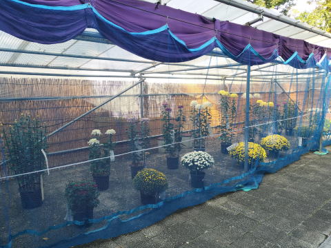 会場で10月号の会報誌が無料で配られていたので、名人たちの「菊花育成だより」を拝見すると、シェード時期は8月中旬頃から開始していることが判明しました。