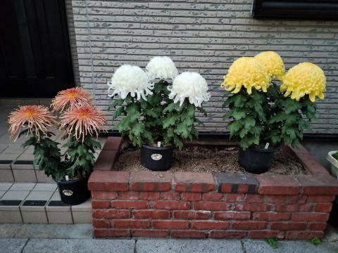 自宅で待機している菊が満開となりましたので、玄関に飾りました。